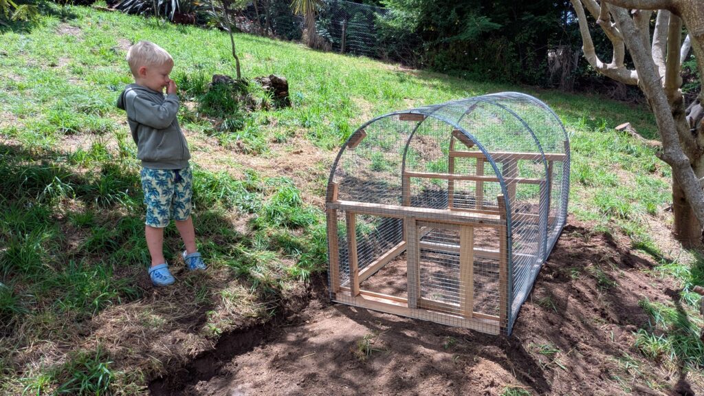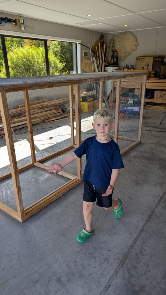 ‘We need a cage attached to the chicken house.’ she said. Starting again with a frame.