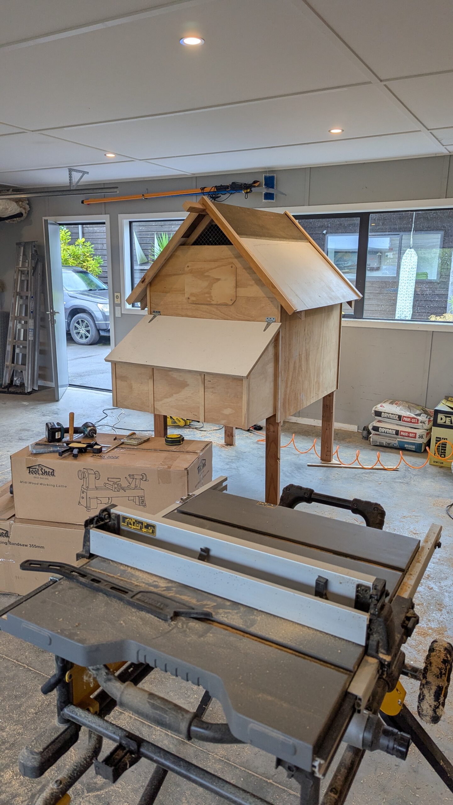 The new chicken house was a great opportunity to upgrade some tools in our wood workshop. Challenge of the hour was to use all leftover materials that have been sitting around wasting space for almost a decade. Other than some screws, hinges and staples we didn’t have to buy anything for this project. But after everything was finished, we went to buy some new sheets of plywood and premium hardwood for future projects. 🤣