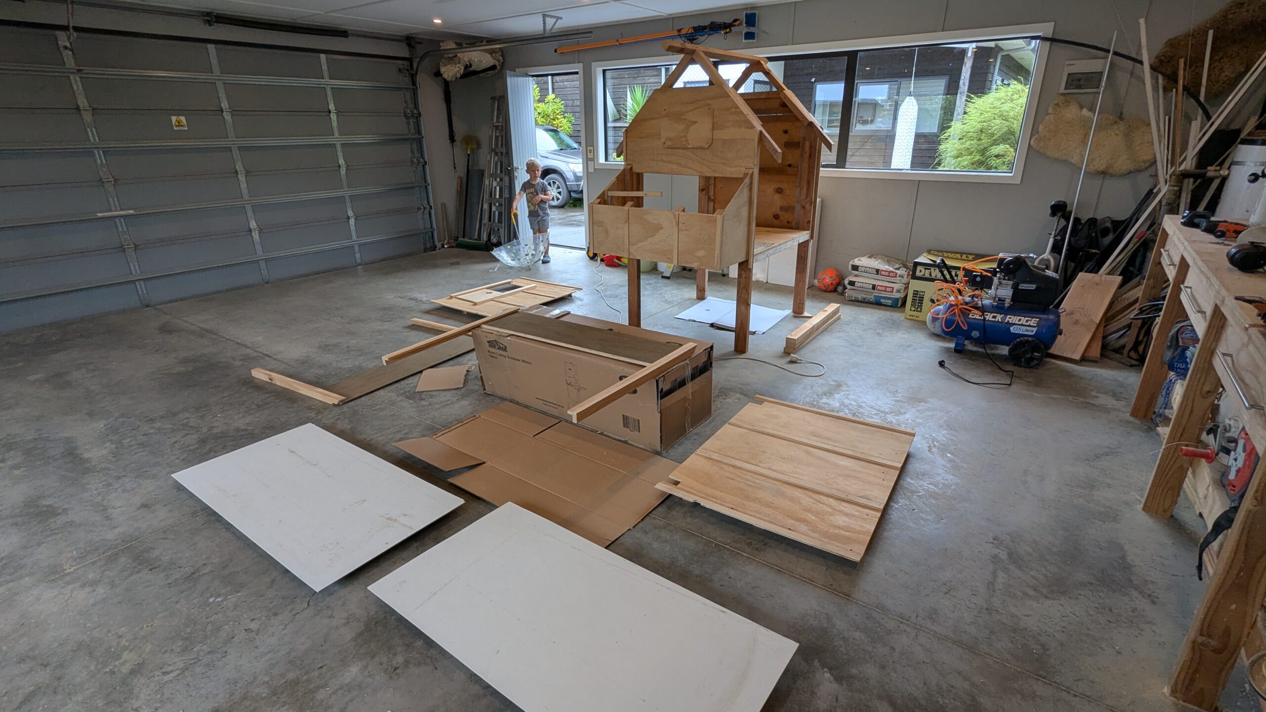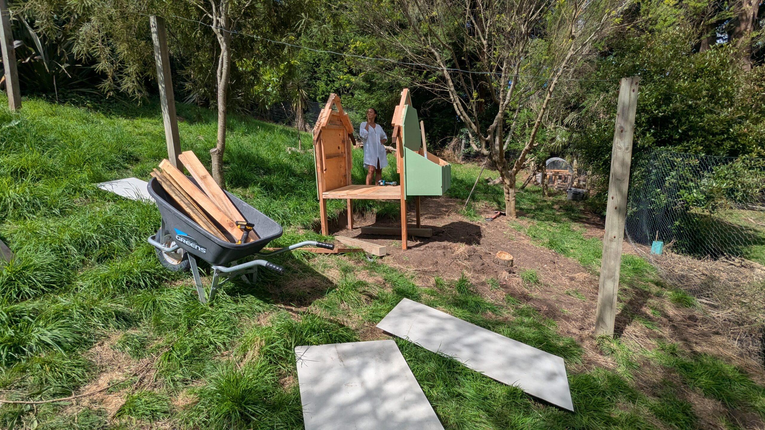 ‘Can we make a new chicken house?’ she said. Sure thing. Let’s get all the offcuts out to make a plan.
